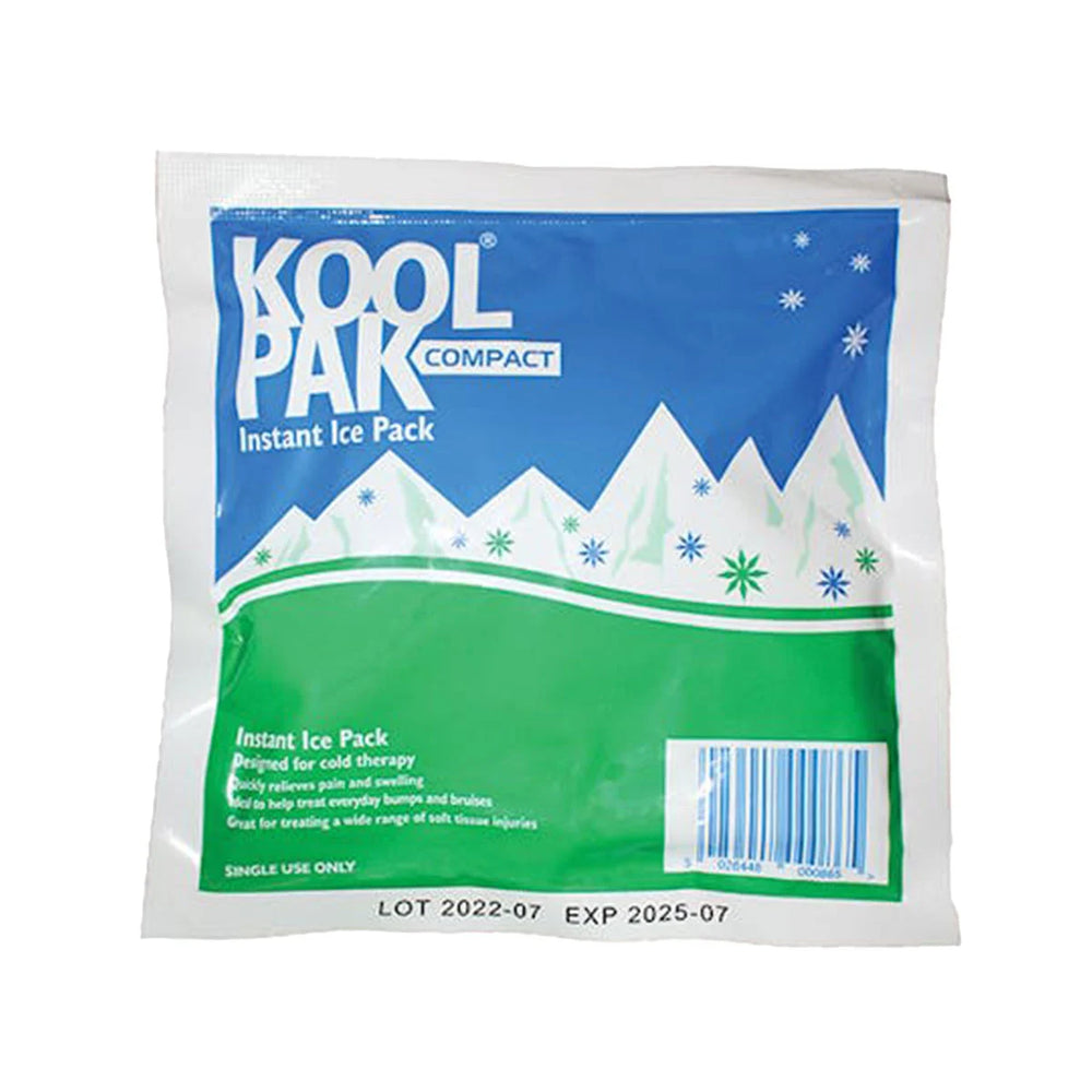An instant ice pack for the treatment of bumps, bruises, strains and sprains made by Koolpak®.